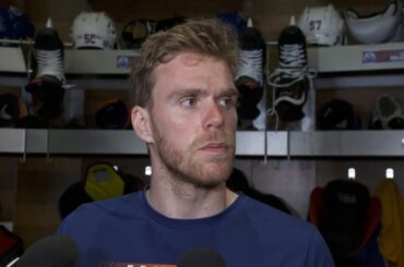 Connor parle après que les Oilers ont remporté leur dernier match de la saison régulière 5-2 contre les Sharks.