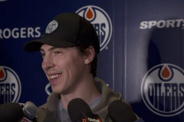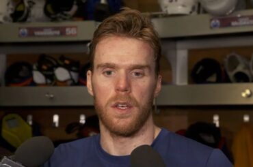 Connor s’entretient avec les médias après une victoire de 2-0 contre les Kings à Rogers Place jeudi soir.