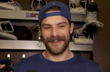 Stuart s’entretient avec les médias après un jeu blanc de 43 arrêts pour établir un record de gardien de but…