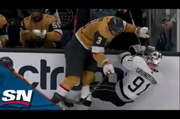 Regardez le défenseur des Golden Knights de Las Vegas, Brayden McNabb, frapper fort l’attaquant des Kings de Los Angeles Carl…