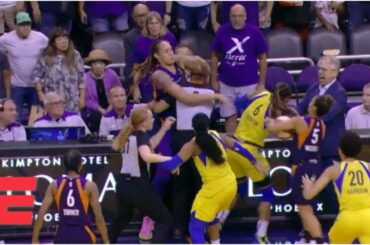Brittney Griner poursuit Kristine Anigwe sur le terrain et est retenue, provoquant l’éjection des deux joueurs avec Diana Taurasi, Briann…