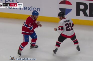 Nick Cousins contre Jayden Struble des Sénateurs d’Ottawa lors du match des Canadiens de Montréal le 1er novembre 2025. via…