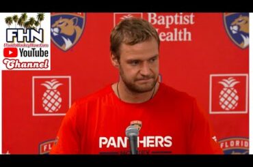 Le capitaine des Panthers de la Floride, Aleksander Sasha Barkov, parle le premier jour du camp d’entraînement de son équipe…