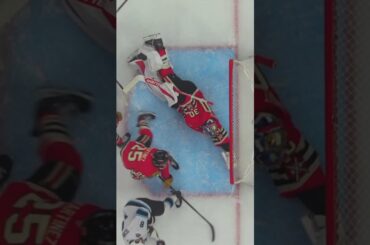 Chicago Blackhawks Spencer Knight se présente pour faire une sauvegarde incroyable de gants sur le club de hockey de l’Utah…