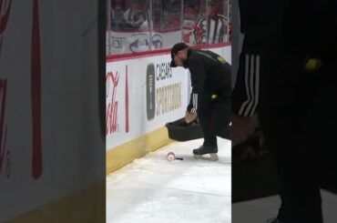 Les arbitres sont rejoints par un préposé à l’entretien de la glace qui utilise une presse à grill et une…