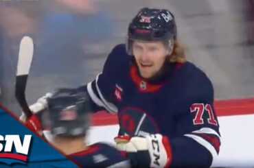 Regardez l’attaquant des Jets de Winnipeg Axel Jonsson-Fjallby recevoir une impressionnante passe bancaire du défenseur Dylan Samberg avant de se…