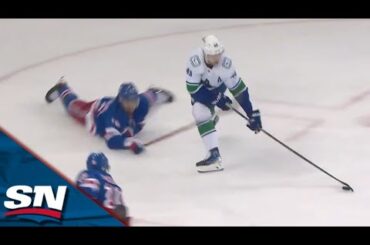 Regardez Elias Pettersson montrer son maniement du bâton et se frayer un chemin vers le filet avant de rentrer le…