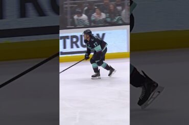 Jaden Schwartz de Kraken perd sa lame de skate et doit sauter athlétiquement sur le banc sur un pied du…