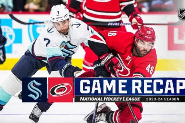 Regardez les faits saillants complets du match entre le Kraken de Seattle et les Hurricanes de la Caroline le 3…