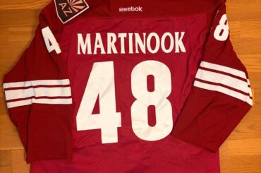 Il y a presque un an maintenant, j’ai échangé à Jordan Martinook son maillot des Coyotes porté lors du match…