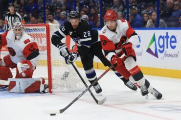 Le défenseur des Hurricanes Sean Walker réalise un arrêt impressionnant avec son patin pour repousser le Lightning. 🏒 Bienvenue sur…