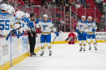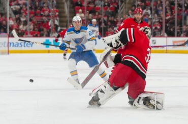 La soirée de deux buts de Jimmy Snuggerud mène les Blues de St. Louis devant les Hurricanes de la Caroline…