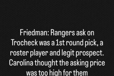 Les Rangers demandent que Trocheck soit un joueur de premier tour, un joueur de la liste et un espoir légitime.…