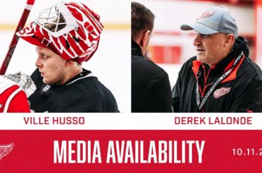 Le gardien de but des Red Wings Ville Husso s’entretient avec les médias après le troisième jour du camp d’entraînement…