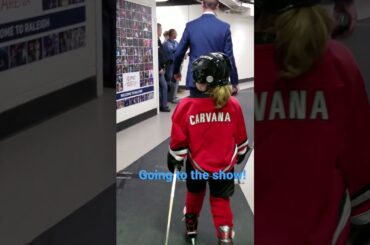 Hayles parcourt les couloirs au son de l’hymne national des Hurricanes de la Caroline de la LNH en tant que…