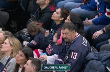 La famille de Johnny et Matthew Gaudreau est dans le bâtiment ce soir tandis que le maillot de Johnny est…