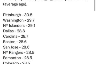 [From CapFriendly on Twitter] Compositions projetées pour la soirée d’ouverture les plus âgées et les plus jeunes de la LNH…