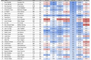 Appariements défensifs classés par 5 contre 5 chances de danger élevé CONTRE toutes les 60 minutes. (min 300 TOI) –…