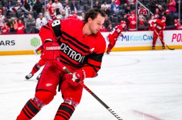 [Red Wings] L’uniforme complet rétro inversé des Wings a fait ses débuts ce soir. — makarmackinnonstan