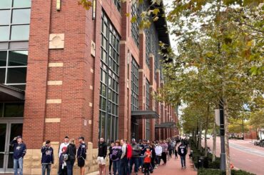 Première ligne de pratique ouverte CBJ. Ice Haus (patinoire d’entraînement reliée à la Nationwide Arena) est réservée aux places debout.…