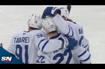 Regardez John Tavares de Toronto Maple Leafs déchire un but à la fente de la fente après le gardien des…