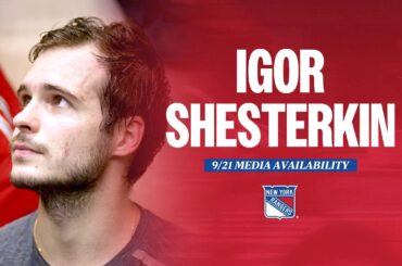 Le gardien de but des Rangers de New York, Igor Shesterkin, répond aux questions des médias après la première journée…