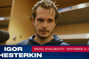 Le gardien des Rangers de New York Igor Shesterkin répond aux questions des médias après le match du 13 novembre…