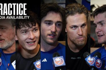 Écoutez Matthew Schaefer, Marc Gatcomb, Anders Lee, Max Tsyplakov et l’entraîneur-chef Patrick Roy après l’entraînement d’aujourd’hui au Northwell Health Ice…