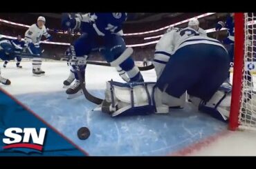 Regardez l’attaquant du Lightning de Tampa Bay Anthony Cirelli marquer après que le gardien des Maple Leafs de Toronto Ilya…