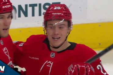 Regardez l’attaquant des Hurricanes de la Caroline Bradly Nadeau décocher un tir du poignet contre les Islanders de New York…