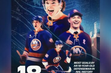 Le défenseur des Islanders Matthew Schaefer marque deux fois en moins d’une minute, établissant un record pour le plus grand…