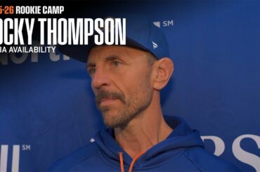 Les insulaires de New York Prospect Rocky Thompson parlent avec les médias après 2 du camp recrue des Islanders 2025…