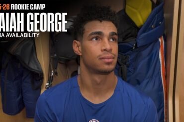 Le prospect des insulaires de New York Isaiah George parle avec les médias après 3 du camp recrue des Islanders…