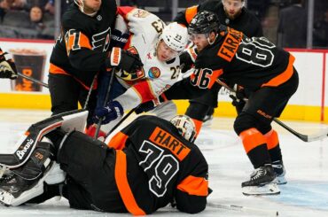 Carter Hart se tient debout lors d’un barrage absolu des Panthers de la Floride dans les dernières minutes, rejetant tout…