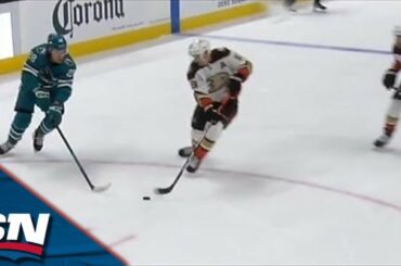 Regardez l’attaquant des Sharks de San Jose Timo Meier recevoir le crédit de son deuxième but de la soirée après…
