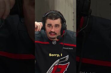 Carolina Hurricanes Seth Jarvis se fait secouer par le klaxon de but des cannes lors d’une interview après le match…