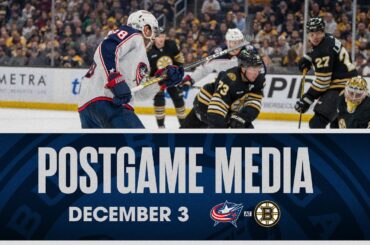 Dante Fabbro, Mathieu Olivier et l’entraîneur-chef Dean Evason s’adressent aux médias après le match à Boston. Suivez le #CBJ sur…