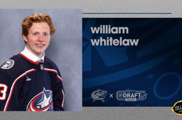 William Whitelaw s’adresse aux médias après avoir été sélectionné par les Blue Jackets de Columbus lors du repêchage 2023 de…