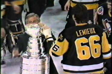 Images du 6e match de la finale de la coupe Stanley 1991, victoire des Penguins de Pittsburgh aux dépens des…