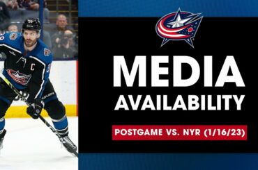 Les Blue Jackets de Columbus s’adressent aux médias après le match de jeudi contre les Ducks d’Anaheim au Nationwide Arena…