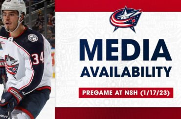 Les Blue Jackets de Columbus parlent aux médias avant le match de ce soir contre les Predators de Nashville à…