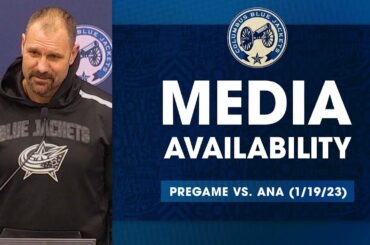 Brad Larsen s’adresse aux médias avant que les Blue Jackets de Columbus n’affrontent les Ducks d’Anaheim le jeudi 19 janvier…