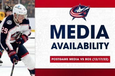 Brad Larsen, Boone Jenner, Patrik Laine et Johnny Gaudreau parlent aux médias après le match d’aujourd’hui contre les Bruins de…