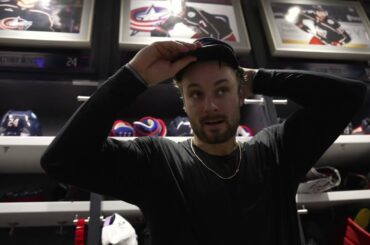 Sean Kuraly, Mathieu Olivier, Joonas Korpisalo et l’entraîneur-chef Brad Larsen s’adressent aux médias après la victoire de ce soir contre…