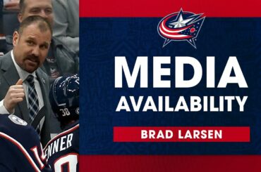 Brad Larsen parle aux médias jeudi après une victoire 5-3 contre les Predators de Nashville. Suivez le #CBJ sur les…