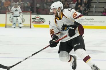 L’entraîneur-chef Brad Larsen s’adresse aux médias après la victoire de 4-3 en prolongation de ce soir contre les Canucks de…