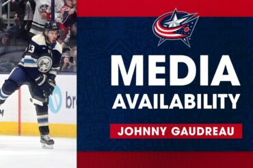 Johnny Gaudreau s’adresse aux médias après la victoire de 4-3 en prolongation contre les Canucks de Vancouver le mardi 18…
