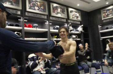 Nick Blankenburg s’adresse aux médias après la victoire de 4-3 en prolongation des Blue Jackets de Columbus contre les Canucks…