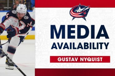 Gustav Nyquist s’adresse aux médias après le match de ce soir contre les St. Louis Blues le 15 octobre 2022.…