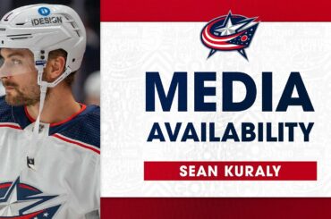 Sean Kuraly s’adresse aux médias après le dernier match de pré-saison des Blue Jackets de Columbus le samedi 8 octobre…